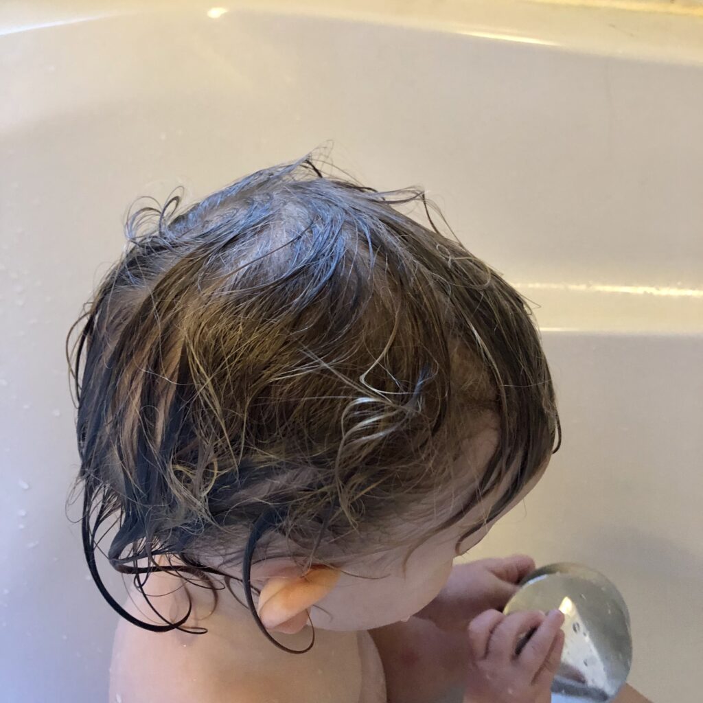 Die Jungs machen eine Pause, der Mann hat ein Zoom Meeting und ich mache eine Wäsche an und setze die Kleine in die Badewanne, weil sie viel sabbert, kleckert, sich Essen in die Haare schmiert.. und die Windel ist heute auch ausgelaufen.