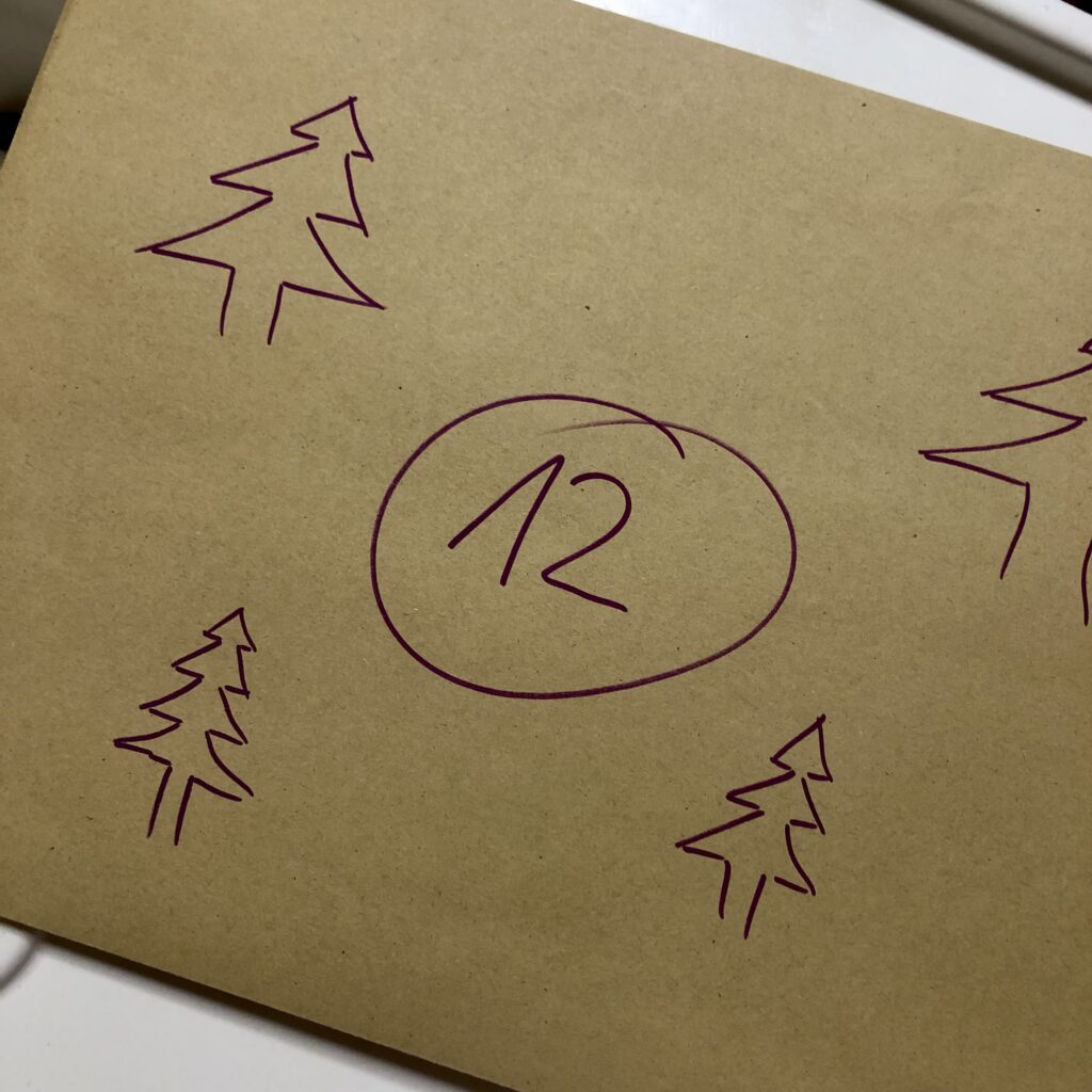 Ich öffne mein Adventskalender-Türchen. Die 12 ist das größte Paket!
