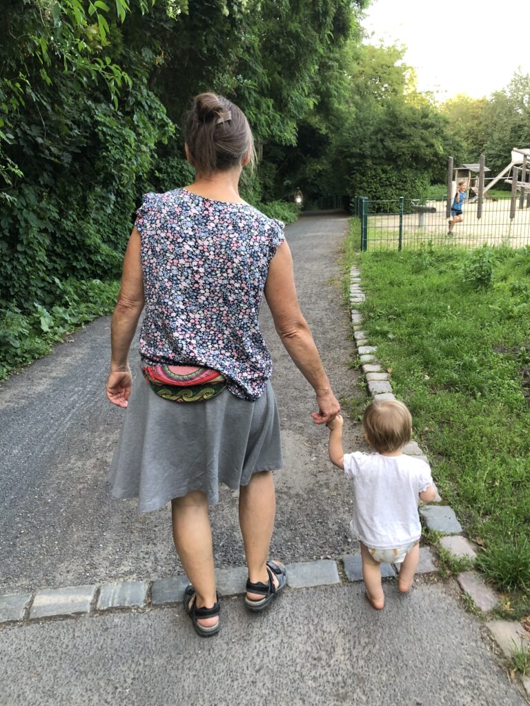 Ich habe zwei Kleider, die ich als Kind getragen hab. Außerdem habe ich ein besonderes Kleid, das ich 2009 bekommen habe – und aufgehoben habe. Natürlich in der Hoffnung, dass es eines Tages eine Tochter tragen kann. Genau um den Geburtstag rum haben alle diese drei Kleider gepasst und das Wetter war passend, denn es sind sehr dünne Kleider und dieser Sommer war auch ordentlich kühl. Ich bin echt dankbar, dass das Wetter und die Größe da so gut gepasst haben. Das hätte auch schief gehen können.