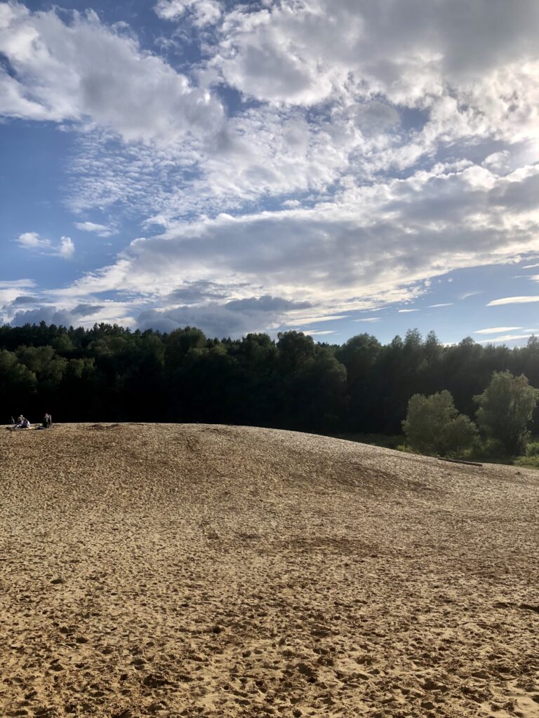 Genau so heute, als wir die allererste Radtour zu sechst in den Berliner Grunewald, zur Kiesgrube, gemacht haben. Ich bin dankbar für unsere Stadt, die solche Möglichkeiten hat. Ich bin dankbar, dass wir zu sechst so unterwegs sein können. Wir haben sogar Freunde dort getroffen. Aber das Mädchen im Sand zu erleben, ist sehr lustig.