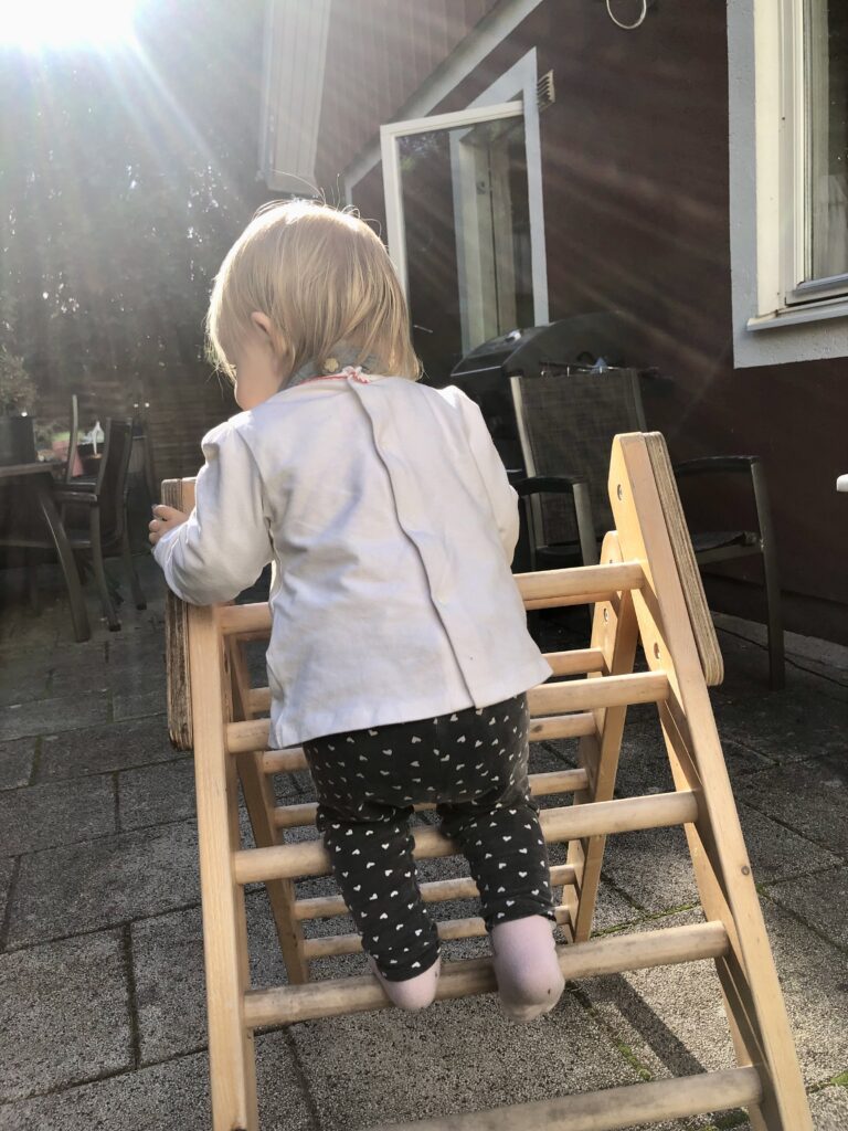 Wir wollten der Kleinen ein paar neue Möglichkeiten geben, legal und kindgerecht zu klettern – wenn sie es sowieso schon überall versucht. Ich konnte über ebay Kleinanzeigen zwei ganz tolle Spielgeräte günstig kaufen. Dafür muss jetzt der Laufstall Platz machen. So rasen die Meilensteine an uns vorbei.
