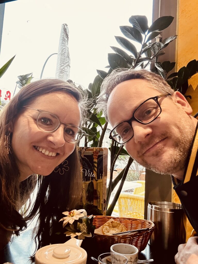 Gleich nach dem Aufstehen bin ich mit ihm frühstücken gegangen. Wir hatten einen Gutschein beim Café an der Ecke. Die vier Kinder haben zuhause alleine gefrühstückt.